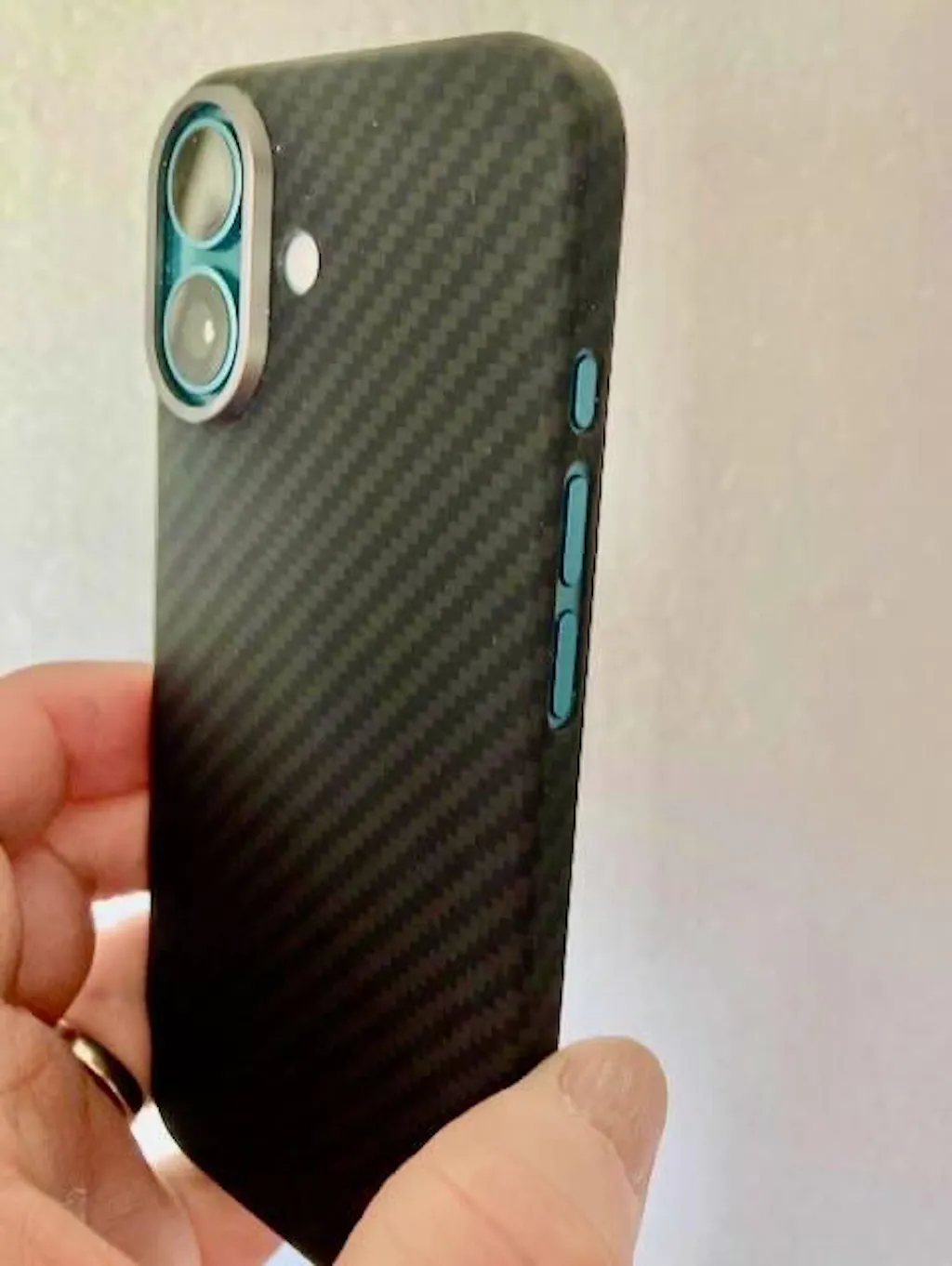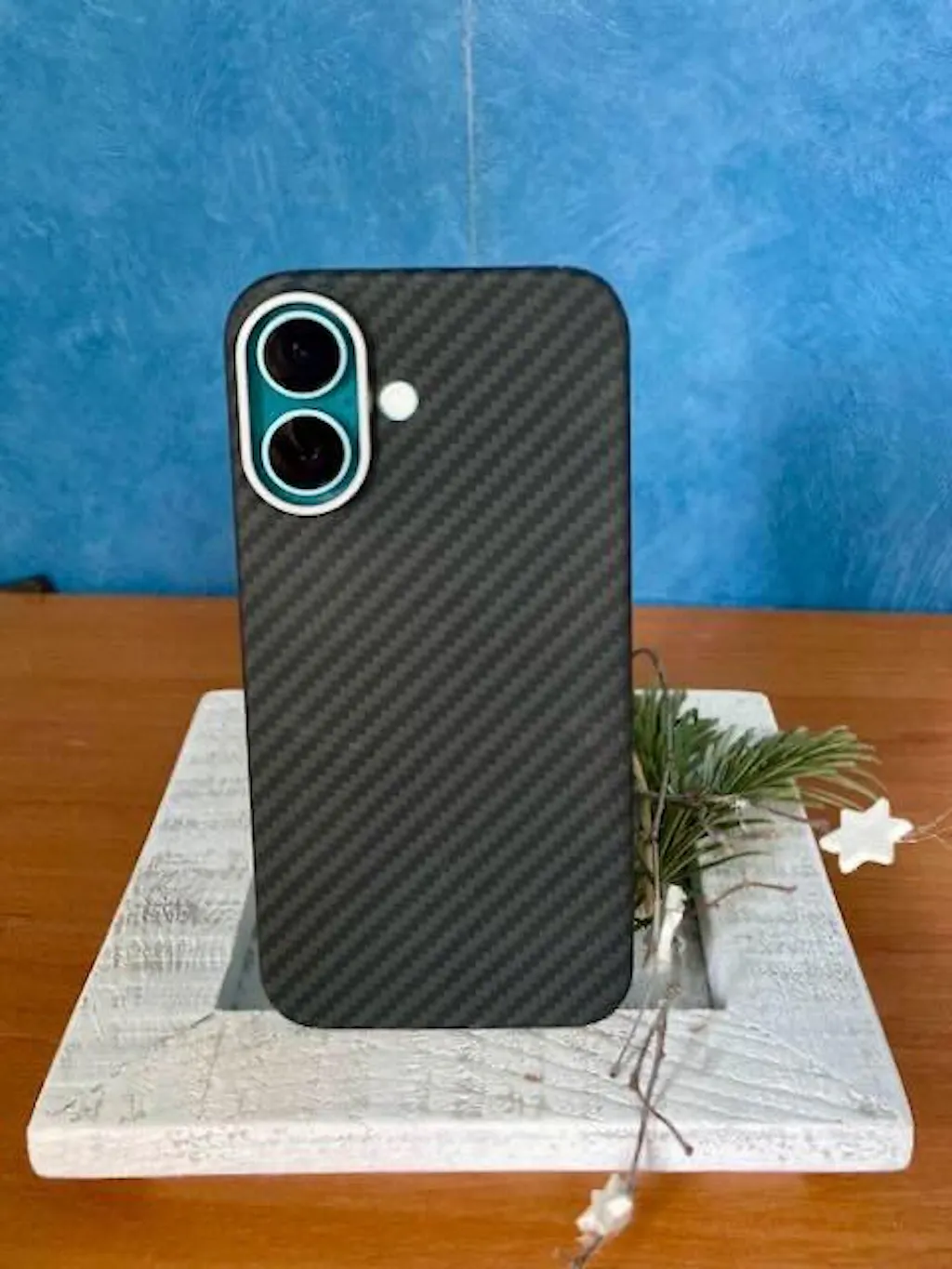 La coque en fibre de carbone, avec son design extra-fin, offre à votre iPhone 16 un look sportif et sophistiqué, qu'il s'agisse du modèle Pro, Pro Max ou Plus.