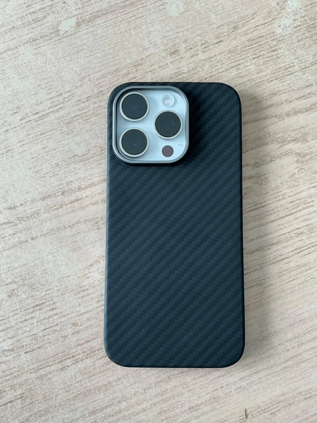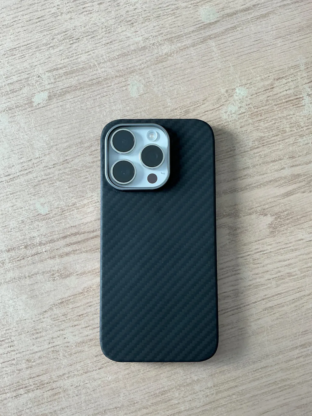 Notre coque en fibre de carbone pour iPhone 16, Pro, Pro Max, Plus a une finition mate discrète avec une sensation douce et légèrement adhérente pour une bonne prise en main.